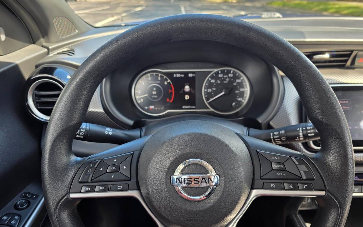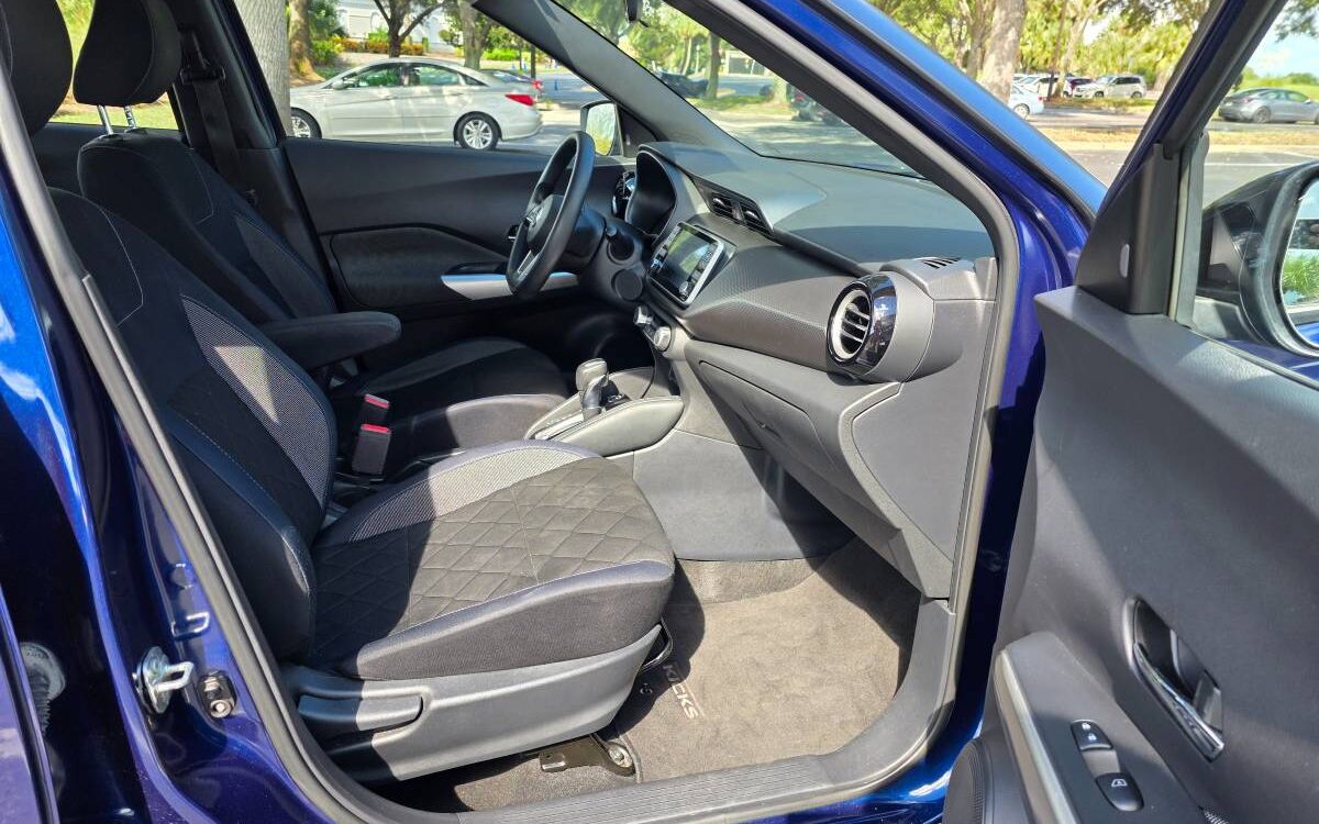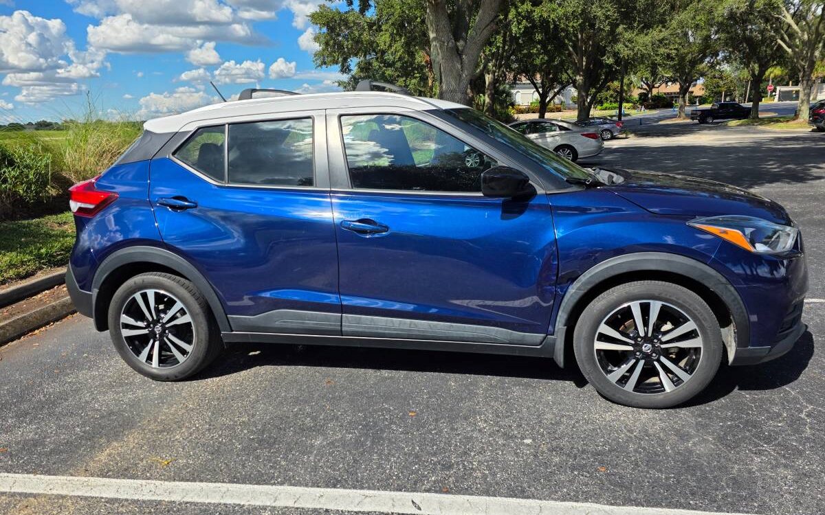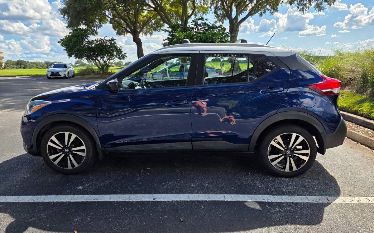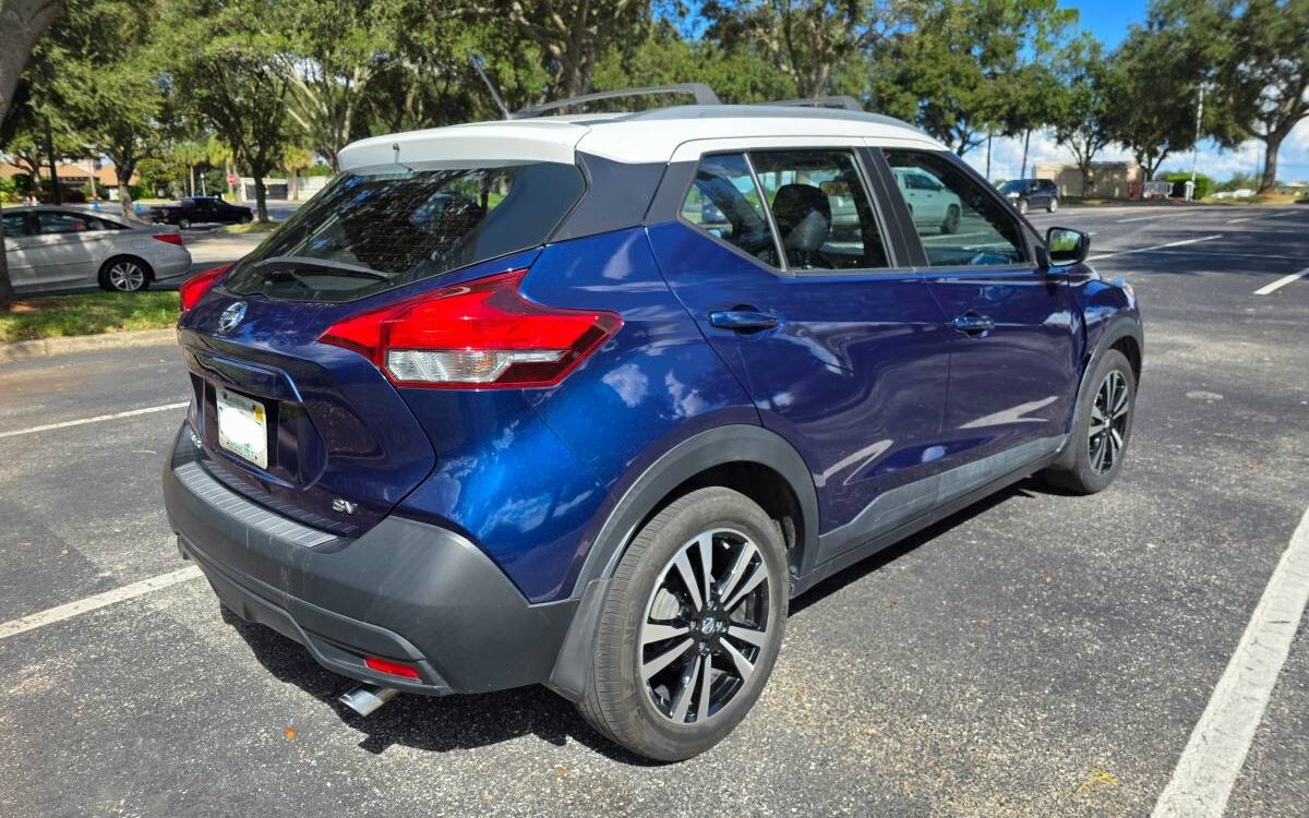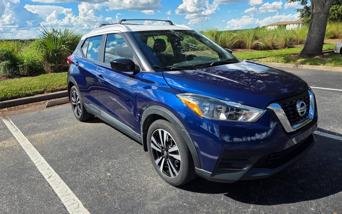 The car has a few minor cosmetic dents on the right fender but is otherwise very clean and reliable. This Nissan Kicks SV is a well-maintained, fuel-efficient crossover.